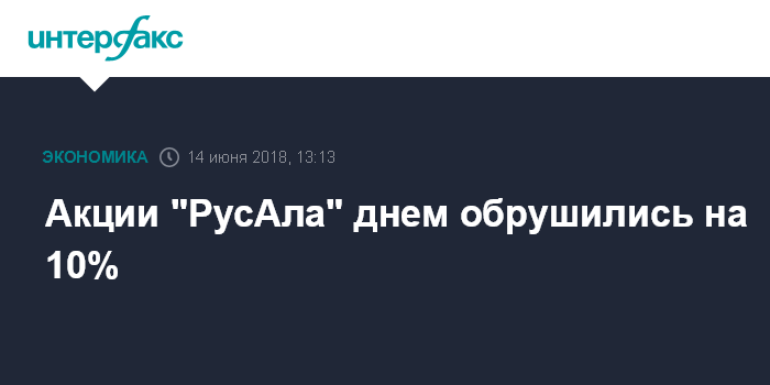Москва. 14 июня. INTERFAX.RU - Падение акций "РусАла" днем в четверг достигло 10% из-за усложнения трансфера бумаг между гонконгским и московскими рынками в связи с санкциями США, бумаги откатились к уровню почти месячной давности.