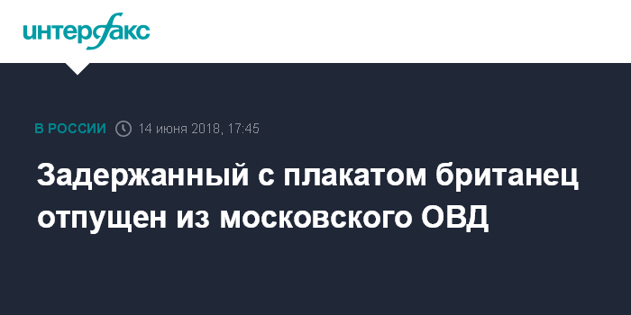 Задержанный с плакатом британец отпущен из московского ОВД