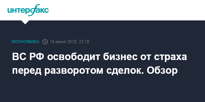 ВС РФ освободит бизнес от страха перед разворотом сделок. Обзор