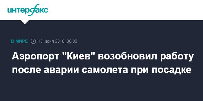 Москва. 15 июня. INTERFAX.RU - Международный аэропорт "Киев" им. Сикорского (Жуляны) закрытый после аварии самолета компании Bravo Airways при посадке, возобновил работу в 23:35, сообщили в пресс-службе аэропорта.