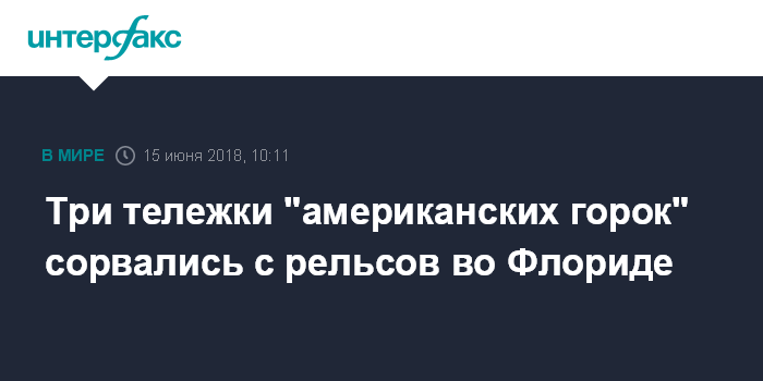 Москва. 15 июня. INTERFAX.RU - Три тележки "американских горок" сошли с рельсов в парке аттракционов города Дейтона-Бич, штат Флорида, сообщает в пятницу канал ABC.