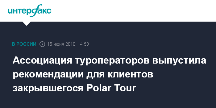 Москва. 15 июня. INTERFAX.RU - Ассоциация туроператоров России (АТОР) подготовила рекомендации для туристов, турагентов и туроператоров, пострадавших от прекращения деятельности группы компаний Polar Tour.