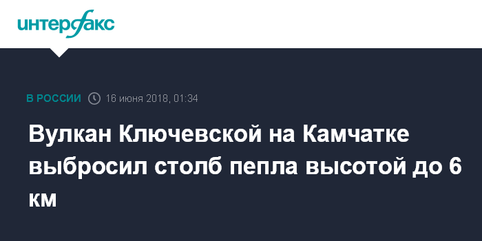 Москва. 16 июня. INTERFAX.RU - Утром в субботу выбросил столб пепла на высоту до шести км над уровнем моря активизировавшийся на Камчатке вулкан Ключевской, сообщили агентству "Интерфакс" в филиале Геофизической службы Российской академии наук (РАН).