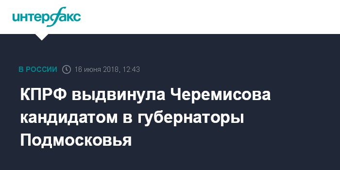 Ранее сообщалось, что на обсуждении находятся четыре кандидатуры на пост губернатора от КПРФ: директор ЗАО "Совхоз имени Ленина" Павел Грудинин; глава городского округа Луховицы Московской области Владимир Барсуков; зампред Мособлдумы Константин Черемисов и председатель комитета Мособлдумы по местному самоуправлению Александр Наумов.