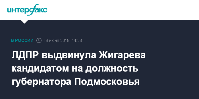 ЛДПР выдвинула Жигарева кандидатом на должность губернатора Подмосковья