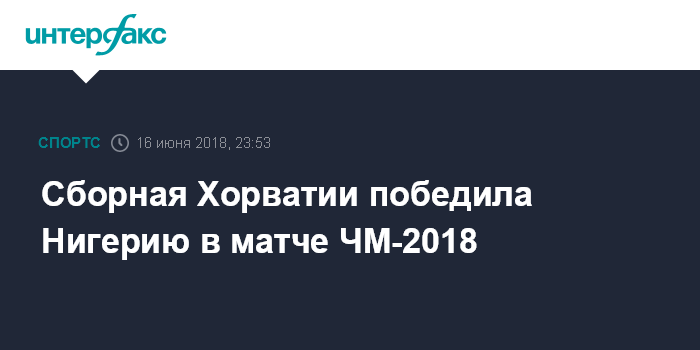 Москва. 16 июня. INTERFAX.RU - Сборная Хорватии по футболу одержала победу над национальной командой Нигерии в матче первого тура группового этапа чемпионата мира-2018.
