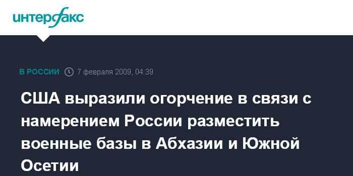 США выразили огорчение в связи с намерением России разместить военные базы в Абхазии и Южной Осетии