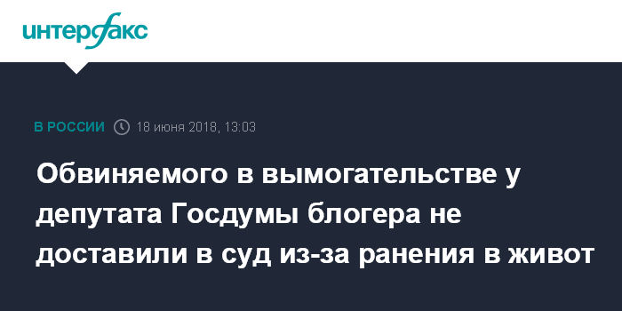 Обвиняемого в вымогательстве у депутата Госдумы блогера не доставили в суд из-за ранения в живот