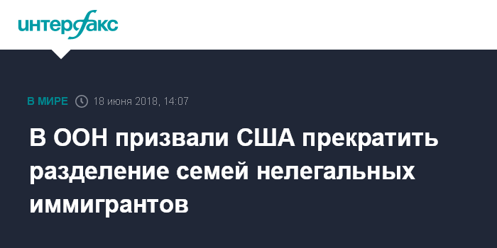 Москва. 18 июня. INTERFAX.RU - Верховный комиссар ООН по правам человека Зейд Раад аль-Хусейн в понедельник призвал Вашингтон прекратить практику разделения семей нелегальных иммигрантов на южной границе, сообщает агентство Associated Press.