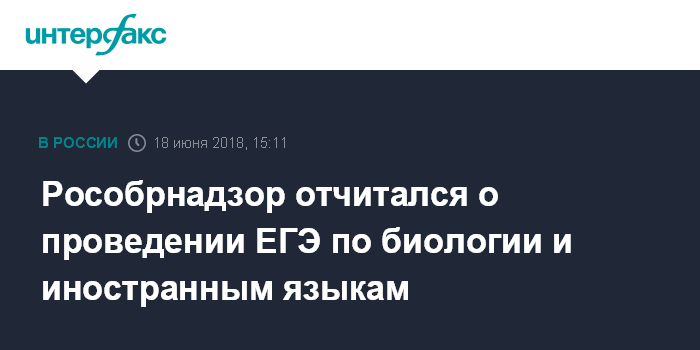 Москва. 18 июня. INTERFAX.RU - Экзамен по биологии и письменная часть ЕГЭ по иностранным языкам прошли без серьезных сбоев и утечек контрольных заданий, сообщили в Рособрнадзоре.