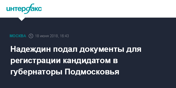 Москва. 18 июня. INTERFAX.RU - Борис Надеждин, избранный кандидатом в губернаторы Московской области от "Партии Роста", подал документы в Мособлизбирком, сообщили в пресс-службе комиссии.