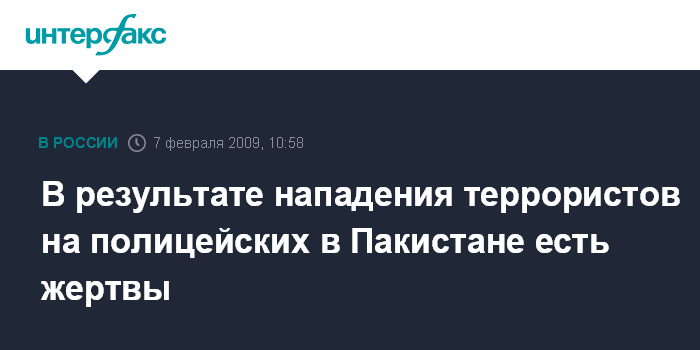Москва. 7 февраля. INTERFAX.RU - Семь офицеров полиции Пакистана погибли в результате нападения боевиков на КПП в деревне Мьянвали провинции Пенджаб, сообщает британская телерадиовещательная корпорация Би-Би-Си со ссылкой на информацию пакистанской полиции.