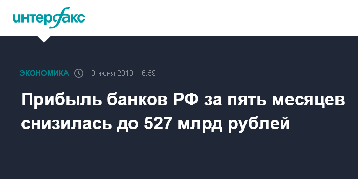 Москва. 18 июня. INTERFAX.RU - Банки РФ в январе-мае 2018 года сократили прибыль на 19,3% по сравнению с аналогичным периодом 2017 года, до 527 млрд рублей, свидетельствует статистика на сайте ЦБ РФ.