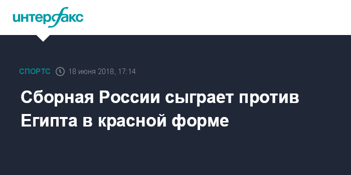 Москва. 18 июня. INTERFAX.RU - Футболисты сборной России проведут матч второго тура группового этапа ЧМ-2018 против Египта в красной форме, сообщается в твиттере национальной команды РФ.