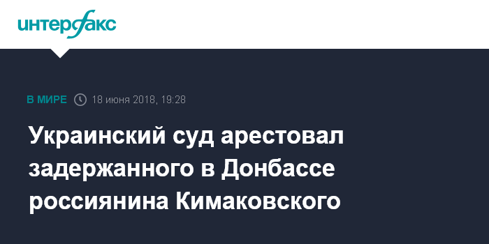 Ранее в июне интернет-издание "Украинская правда" со ссылкой на решение Красноармейского горрайонного суда Донецкой области от 18 мая 2018 года сообщило что суд отпустил из-под стражи гражданина России Кимаковского, обвиняемого в развязывании войны.
