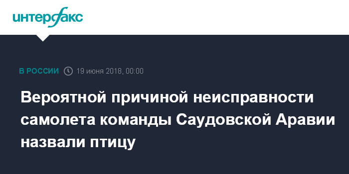Вероятной причиной неисправности самолета команды Саудовской Аравии назвали птицу