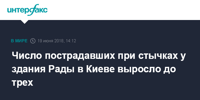 Москва. 19 июня. INTERFAX.RU - В результате стычек у здания Верховной Рады Украины во вторник пострадали три человека, сообщил начальник Главного управления Национальной полиции Киева Андрей Крищенко.