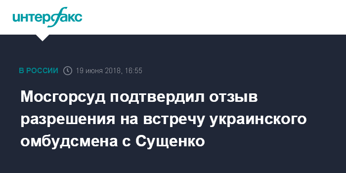Мосгорсуд подтвердил отзыв разрешения на встречу украинского омбудсмена с Сущенко