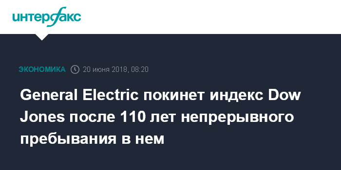 General Electric покинет индекс Dow Jones после 110 лет непрерывного пребывания в нем