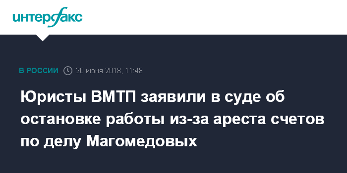 Юристы ВМТП заявили в суде об остановке работы из-за ареста счетов по делу Магомедовых