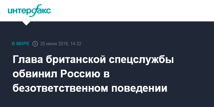 Глава британской спецслужбы обвинил Россию в безответственном поведении