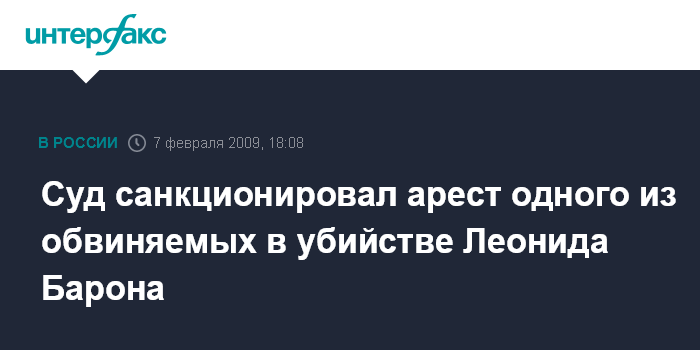 Москва. 7 февраля. INTERFAX.RU - Дорогомиловский суд Москвы выдал санкцию на арест одного из обвиняемых по делу об убийстве бывшего чиновника Минэкономразвития, внештатного советника спикера Совета Федерации Леонида Барона.