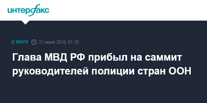 Москва. 21 июня. INTERFAX.RU - Глава МВД РФ Владимир Колокольцев проведёт ряд двусторонних встреч и выступит на саммите руководителей полицейских служб государств-членов ООН в Нью-Йорке, сообщила "Интерфаксу" официальный представитель ведомства Ирина Волк.
