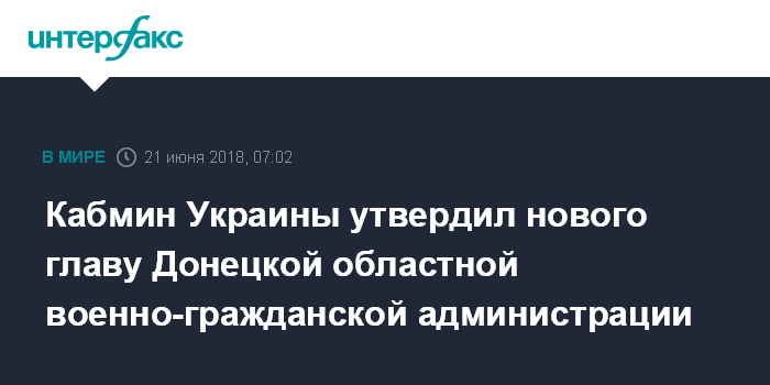 Кабмин Украины утвердил нового главу Донецкой областной военно-гражданской администрации