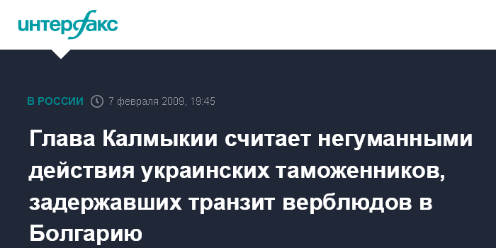 Глава Калмыкии считает негуманными действия украинских таможенников, задержавших транзит верблюдов в Болгарию