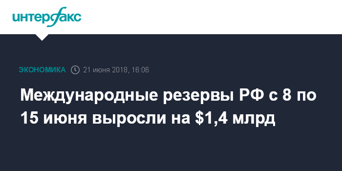 Международные резервы РФ с 8 по 15 июня выросли на $1,4 млрд