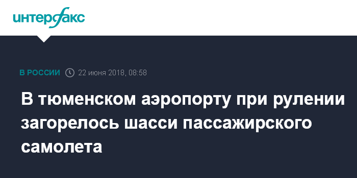 Москва. 22 июня. INTERFAX.RU - Шасси пассажирского самолета авиакомпании "ЮТэйр" загорелось на рулежной дорожке в аэропорту "Рощино" в Тюмени утром в пятницу, пострадавших нет.