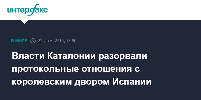 Москва. 22 июня. INTERFAX.RU - Власти Каталонии заявили, что разрывают протокольные отношения с испанским королевским двором, сообщила в пятницу газета El Mundo.
