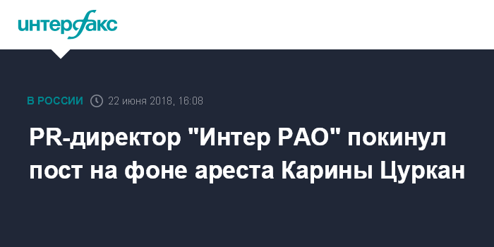 PR-директор "Интер РАО" покинул пост на фоне ареста Карины Цуркан