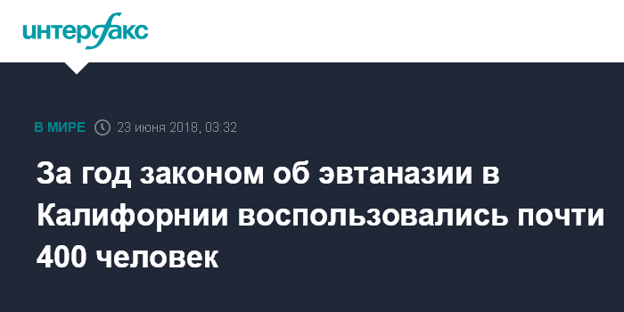 Калифорния входит в число пяти штатов США, где узаконена эвтаназия. Аналогичные законы действуют в Вашингтоне, Орегоне, Монтане и Вермонте.