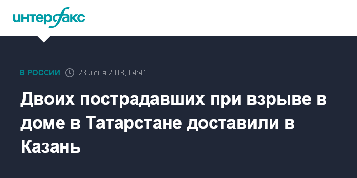 Москва. 23 июня. INTERFAX.RU - Спецборт МЧС России доставил из Заинска в Казани двоих пострадавших в результате взрыва в жилом доме, сообщает пресс-служба ГУ МЧС России по Татарстану.