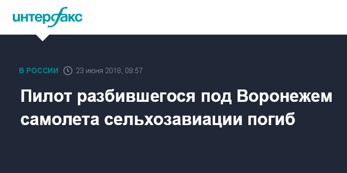 Москва. 23 июня. INTERFAX.RU - Московская межрегиональная транспортная прокуратура начала проверку в связи с падением легкомоторного самолета в Воронежской области и гибелью пилота.