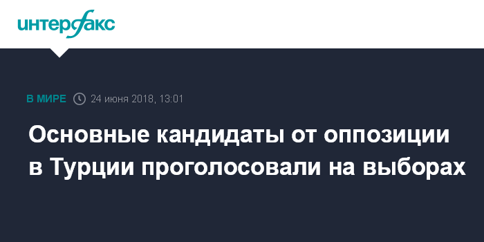 Москва. 24 июня. INTERFAX.RU - Лидеры основных оппозиционных турецкий партий проголосовали на досрочных президентских и парламентских выборах страны, сообщает в воскресенье Анатолийское агентство новостей.