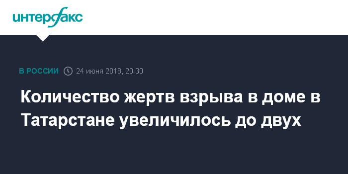 Москва. 24 июня. INTERFAX.RU - В больнице Казани скончалась женщина, пострадавшая в результате взрыва в доме в Заинске, сообщили агентству "Интерфакс" в пресс-службе Минздрава Татарстана.