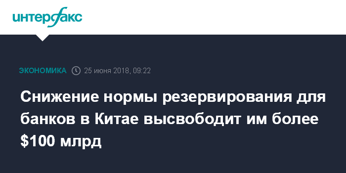 Снижение нормы резервирования для банков в Китае высвободит им более $100 млрд