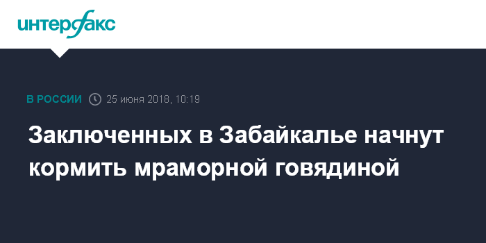 Москва. 25 июня. INTERFAX.RU - Блюда из мраморной говядины пополнят рацион питания осужденных в местах лишения свободы в Забайкальском крае, сообщает пресс-служба регионального УФСИН.