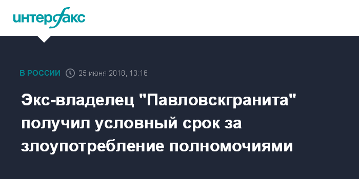 Экс-владелец "Павловскгранита" получил условный срок за злоупотребление полномочиями