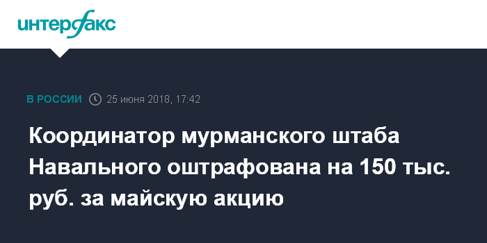 Координатор мурманского штаба Навального оштрафована на 150 тыс. руб. за майскую акцию