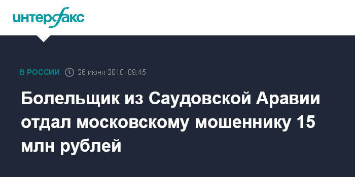 Болельщик из Саудовской Аравии отдал московскому мошеннику 15 млн рублей