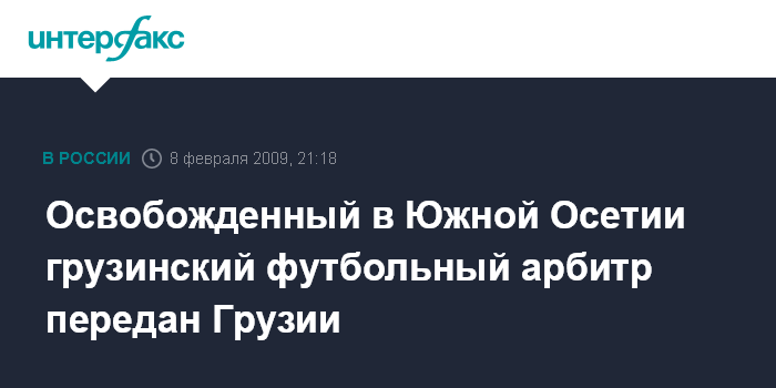 Тбилиси. 8 февраля. ИНТЕРФАКС – Футбольный судья из Грузии Малхаз Беуклишвили, в воскресенье освобожденный из плена в результате спецоперации, проведенной сотрудниками правоохранительных органов Южной Осетии, передан грузинской стороне.