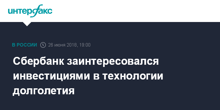 Москва. 26 июня. INTERFAX.RU - Сбербанк заявил об интересе инвестировать в технологии, связанные с продолжительностью жизни.