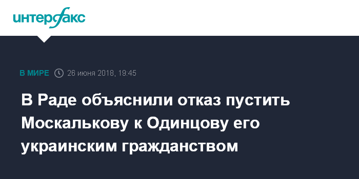Москва. 26 июня. INTERFAX.RU - Уполномоченный Верховной Рады Украины по правам человека Людмила Денисова сообщила российской коллеге Татьяне Москальковой, что посещение находящегося в СИЗО Киева Максима Одинцова невозможно, так как он является гражданином Украины.