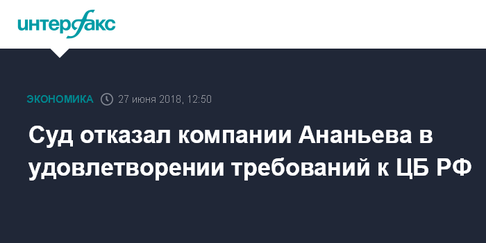 Суд отказал компании Ананьева в удовлетворении требований к ЦБ РФ