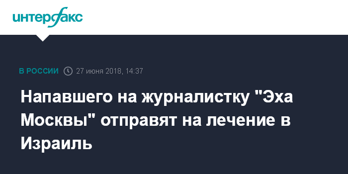Напавшего на журналистку "Эха Москвы" отправят на лечение в Израиль