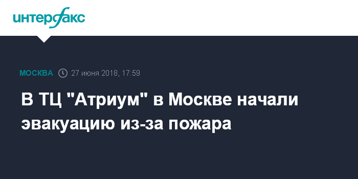 Москва. 27 июня. INTERFAX.RU - Порядка 500 человек эвакуировано из Торгового центра "Атриум" в Москве из-за возникшего пожара, сообщил "Интерфаксу" в среду информированный источник.