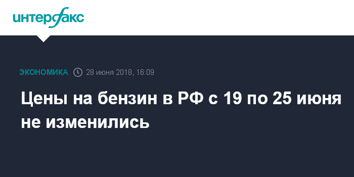 Москва. 28 июня. INTERFAX.RU - Цены на бензин за период с 19 по 25 июня не изменились, свидетельствуют данные Росстата.